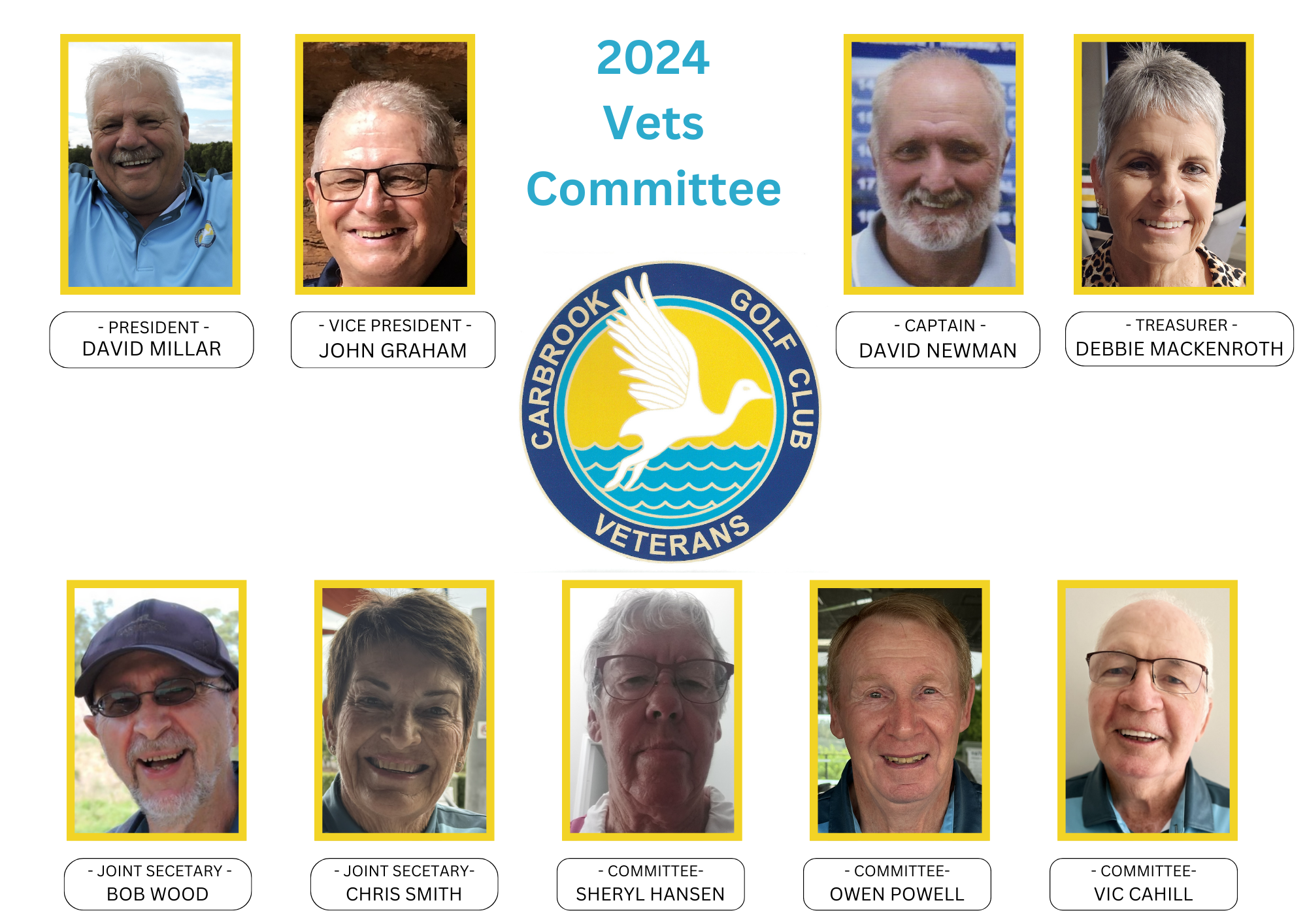 The Carbrook Vets Committee: The Carbrook Veteran Golfers is managed by a committee comprised of volunteer veterans members. These people are passionate supporters of the Carbrook Vets and work hard to ensure that the members interests and needs are met ensuring a friendly golfing environment is provided and maintained.